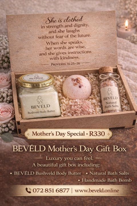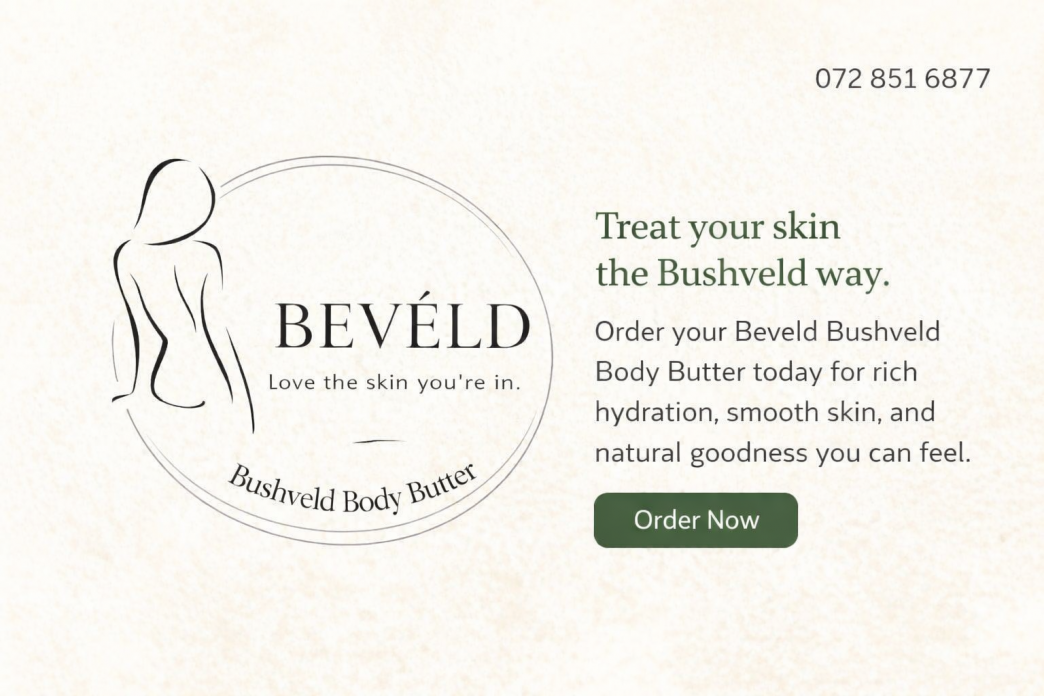 Order BEVÉLD Bushveld Body Butter via WhatsApp. Choose your size (50ml, 250ml, 400ml) and send us a message to place your order.